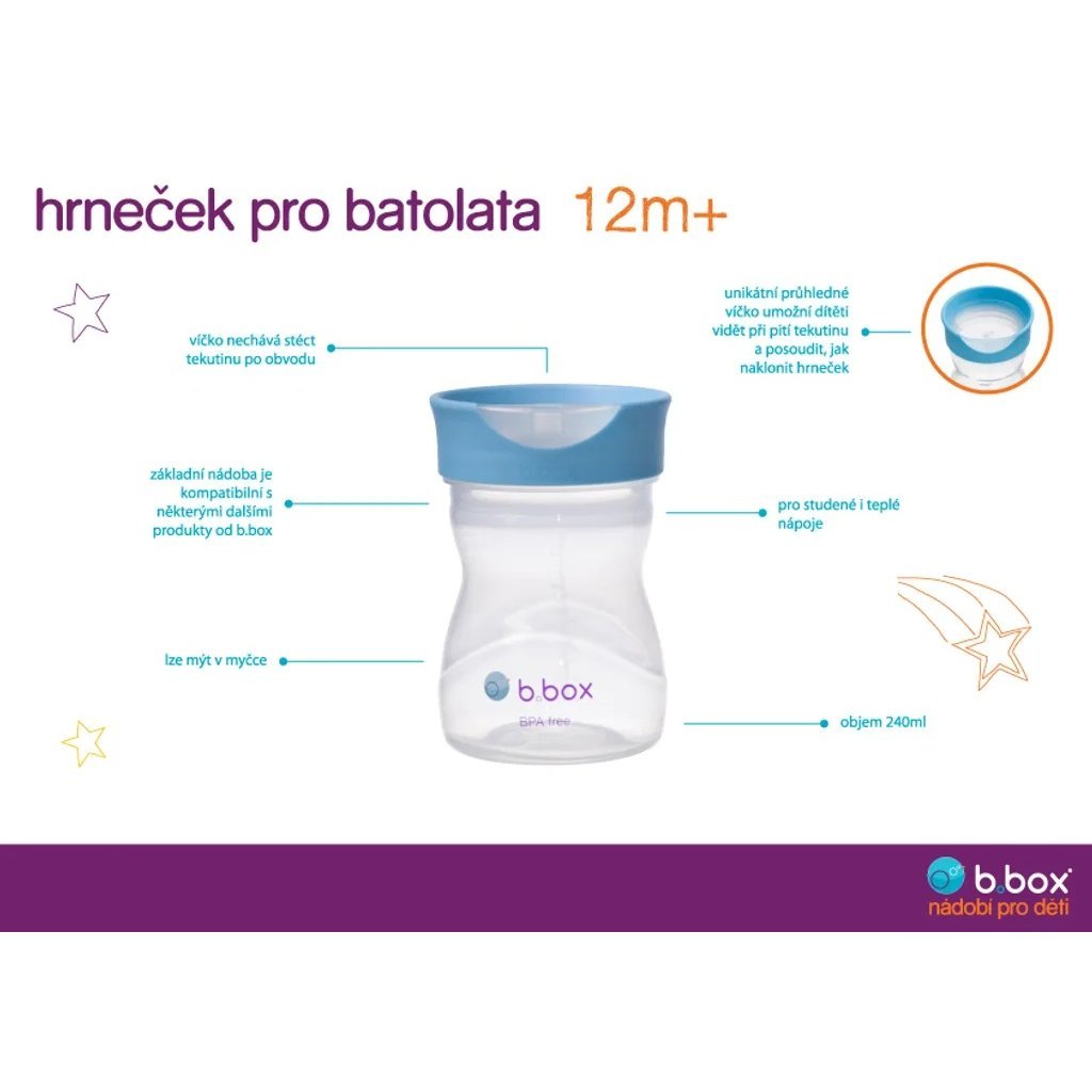- Kubek z pokrywką zapobiegającą rozlewaniu i słomką od 6. miesiąca życia, z elastyczną słomką i ciężarkiem umożliwiającym picie z dowolnego kąta